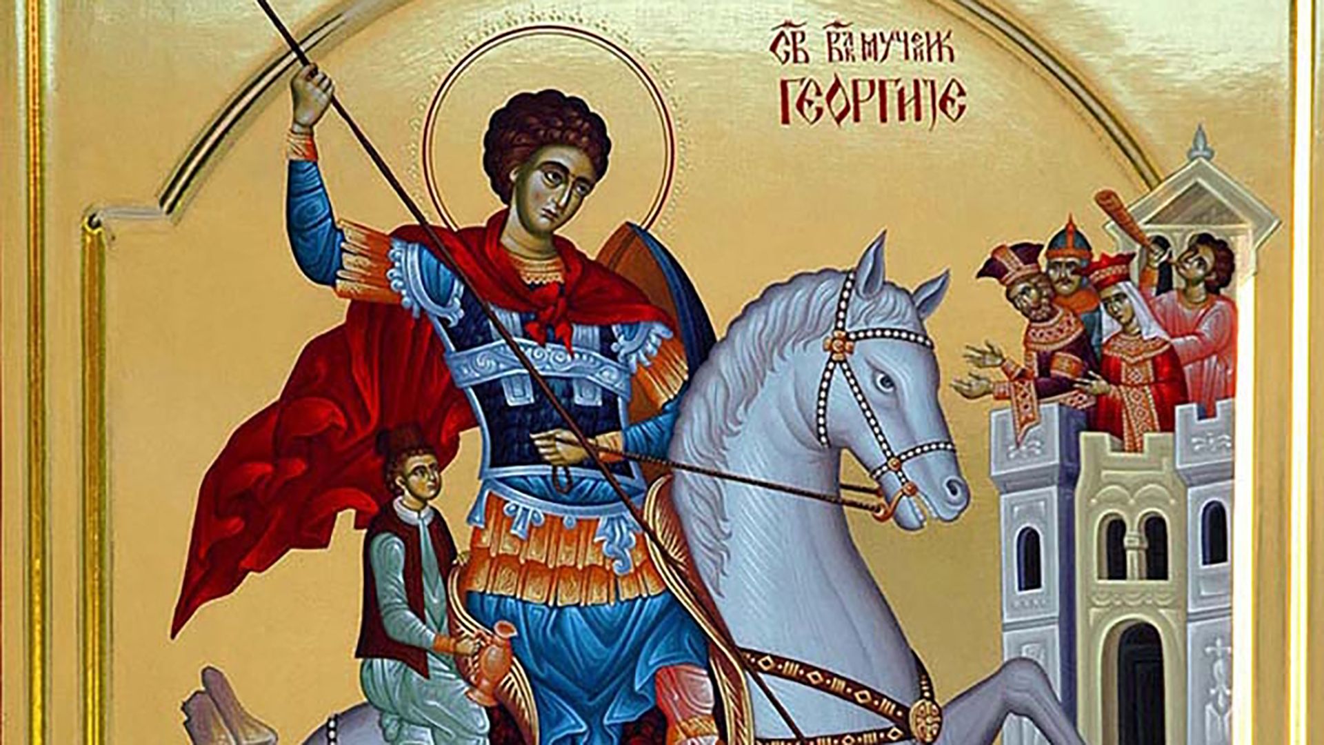 Георги во својата дваесетта година го стекнал чинот трибун и како таков служел при царот Диоклецијан. Кога овој цар започнал гонење на христијаните, Георги истапил пред него и одважно изјавил дека е христијанин, поради што царот го затворил, наредил нозете да му ги стават во клади, а на градите да му положат тежок камен. Потоа наредил да го врзар на тркало под кое имало штици со големи клинци и така го вртеле. По ова го закопале во ров, така што надвор од земјата му била само главата и го оставиле во ровот три дена и три ноќи. Но при сите овие маки Георги непрестајно...