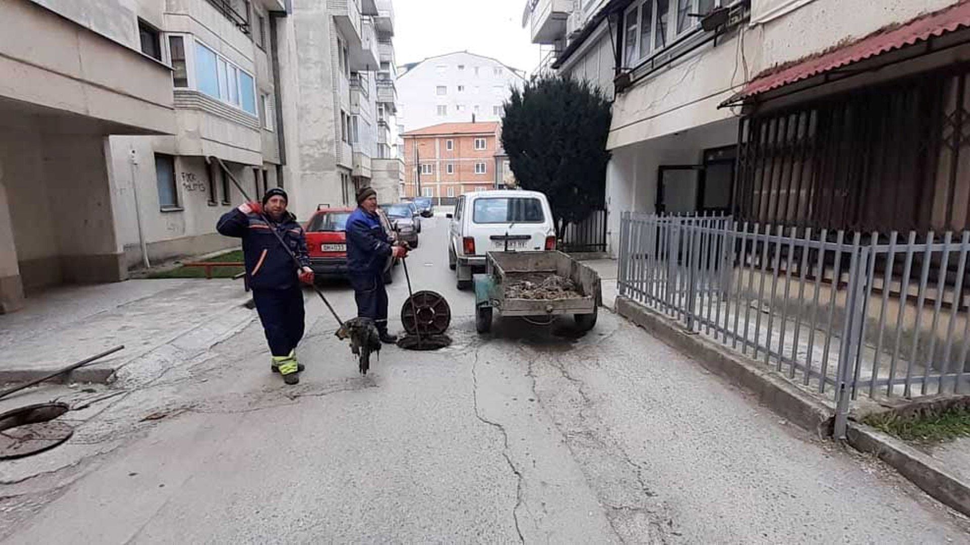 Екипа од одделението за фекално и атмосферско одржување во рамките на своите активности врши проверка и чистење на шахтите на ул. „Богомилска“.