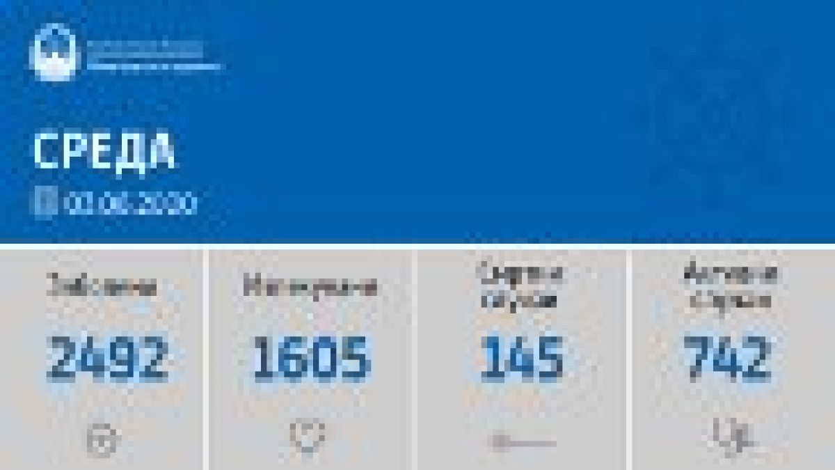 Вкупната бројка на ковид дијагностицирани во нашата земја од почетокот на епидемијата изнесува 2492, бројката на оздравени пациенти е 1605, на починати е 145, а во моментов бројот на активни случаи во земјата изнесува 742.