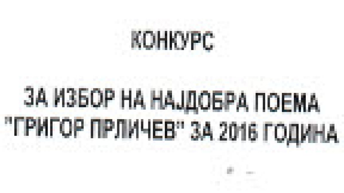 Поаѓајќи од примарните цели и дејности на Установата – развој и поттикнување на литературното творештво, а по повод и во рамките на манифестацијата – проектот од национален интерес во областа на културата за 2017 година “Прличеви беседи”, утврден и финансиран од страна на Министерството за култура на Република Македонија, се распишува Конкурсот за избор на најдобра поема “Григор Прличев” за 2016 година. Конкурсот е анонимен, а за најдобрите три поеми предвидена е и парична награда.