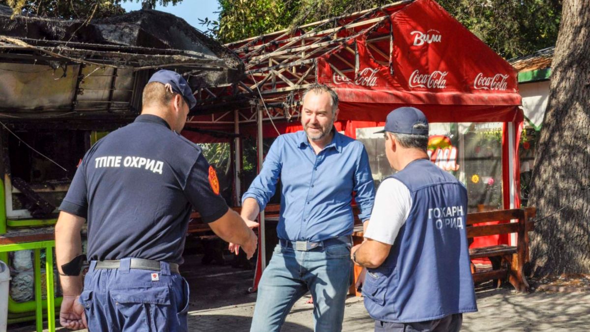 Градоначалникот Константин Георгиески утрово заедно со дел од пожарникарите од Територијалната противпожарна единица од Охрид направи увид на опожарениот објект на седвичарата „Вили“ на улицата „Димитар Влахов“, каде што вчера доцна попладне избувна голем пожар.