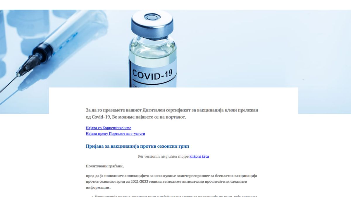 Пријавувањето за вакцинација против сезонскиот грип оваа година на vakcinacija.mk
