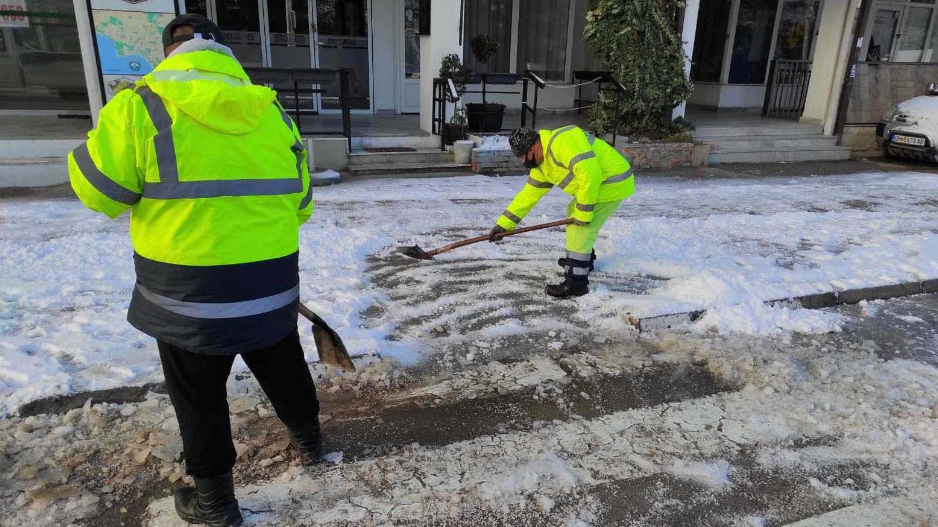 Со новите снежни врнежи кои го зафатија охридскиот регион уште од синoќа дежурните екипи на Ј.П.„Охридски Комуналец” излегоа веднаш на терен.