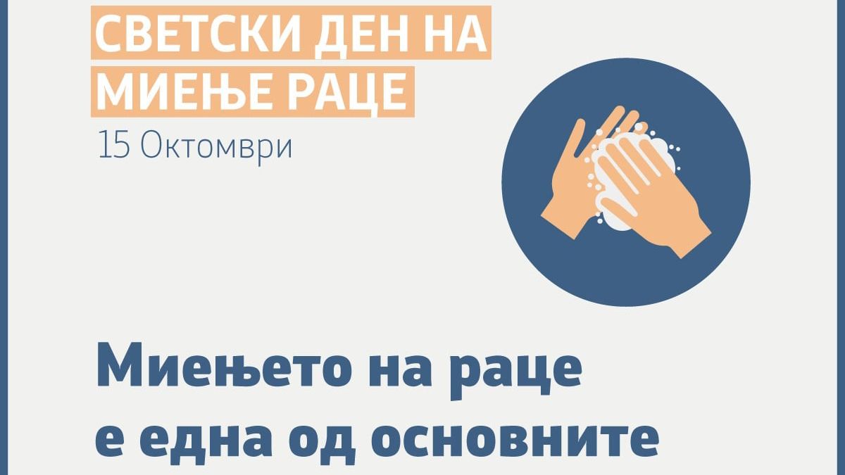 Светскиот ден на одржување хигиена на рацете – 15 октомври, годинава се одбележува под мотото „Хигиена на рацете за сите“, со цел кревање на свесноста и разбирањето за важноста од редовно и темелно миење на рацете со сапун и вода, како најлесен и најдобар начин за превенција од болести и спречување на ширење на инфекции.