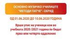 Основното музичко училиште „Методи Патче“ во период од 1-ви до 10-ти јуни врши уписи за ученици во прво оделение за инструментите пијано и виолина и за четврто одделение за инструментите:флејта, гитара,кларинет и хармоника.