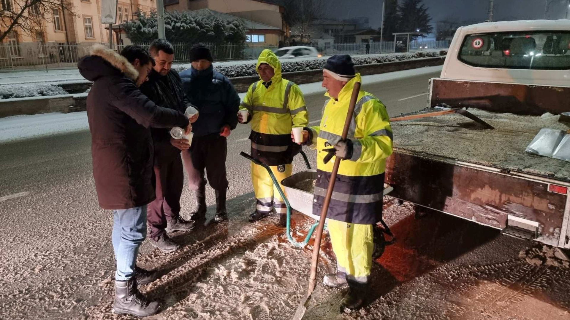 Надлежните на Јавното претпријатие обезбедија топли оброци за сите 92 лица кои беа вклучени синоќа во расчистувањето на снегот од охридските улици и околината на Охрид. Беше поделен и топол чај кој беше обезбеден од кафе барот „Инстинкт“.