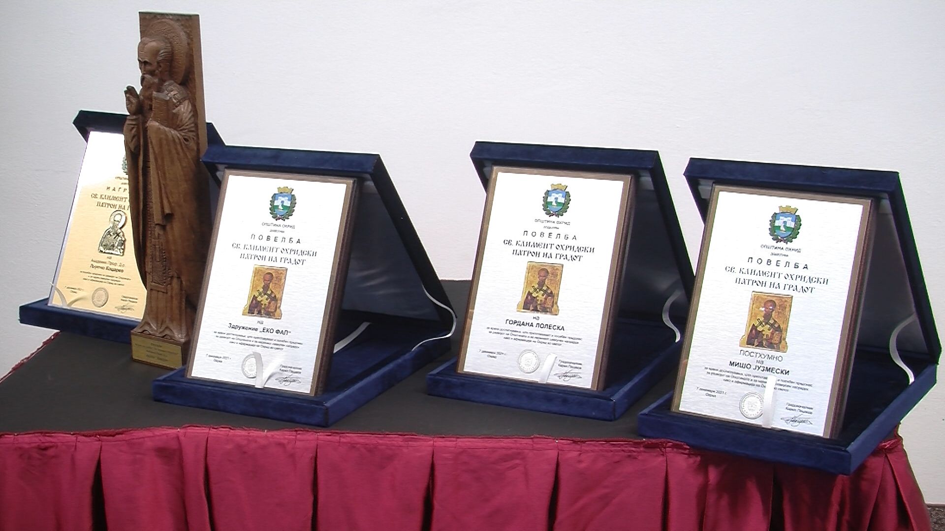 Охрид го чествува Св. Климент Охридски заштитникот на градот. Централниот настан, Свечената академија се одржа синоќа во големата сала на Општина Охрид на која беа доделени највисоките признанија на заслужни граѓани, Светиклиментовата награда и повелбите.