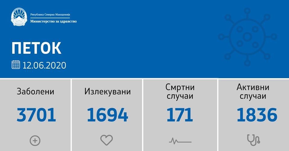 Во последните 24 часа се направени 1045 тестирања, а регистрирани се 164 нови случаи на ковид-19 во:
