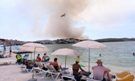 Гори ниска сува трева и грмушки, а во гасењето учествуваат и хеликоптер и канадери. Мештаните јавуваат дека чадот и пепелта стигнале до плажата, која е преполна туристи.
