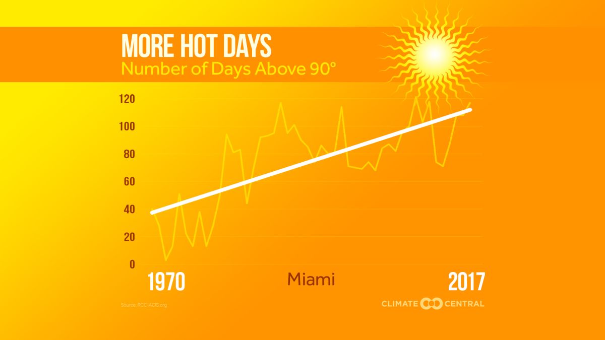 Вкупниот број денови преку 50 степени се зголемувал секоја деценија од 1980-та година. Во просек, помеѓу 1980-та и 2009-та температурите преминале 50 степени околу 14 денови во годината. Оваа бројка е зголемена на 26 денови во периодот меѓу 2010 и 2019.